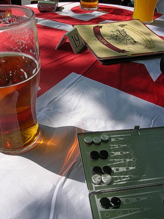 The annual St Georges Day pub crawl, around Londons finest old pubs, starting in borough and finishing in Charing Cross many units later.